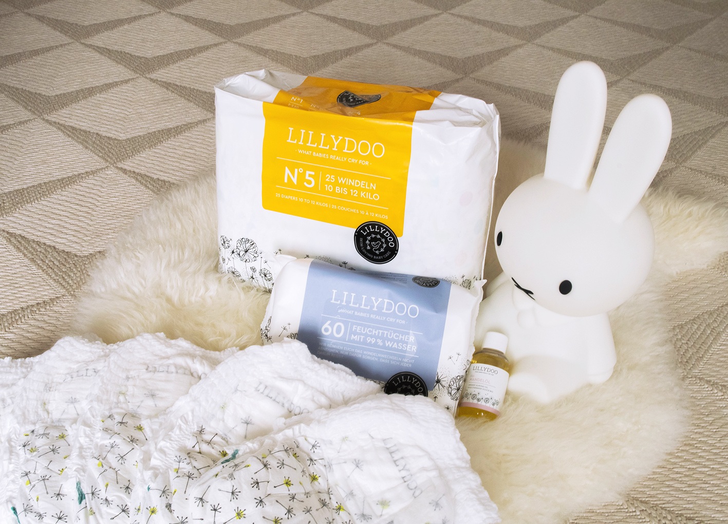 LILLYDOO not only offers diapers and diaper pants but also biodegradable wipes in the sorts ‘sensitive’ and ‘with 99% water’ as well as extra soft change mats with a pretty ‘Little Blowballs’ design. A skin care line completes the range with three more essentials for the changing table: mums and dads can also rely completely on the proven LILLYDOO quality for the skin care of their darlings with organic almond oil, delicate care cream and gentle wound protection.