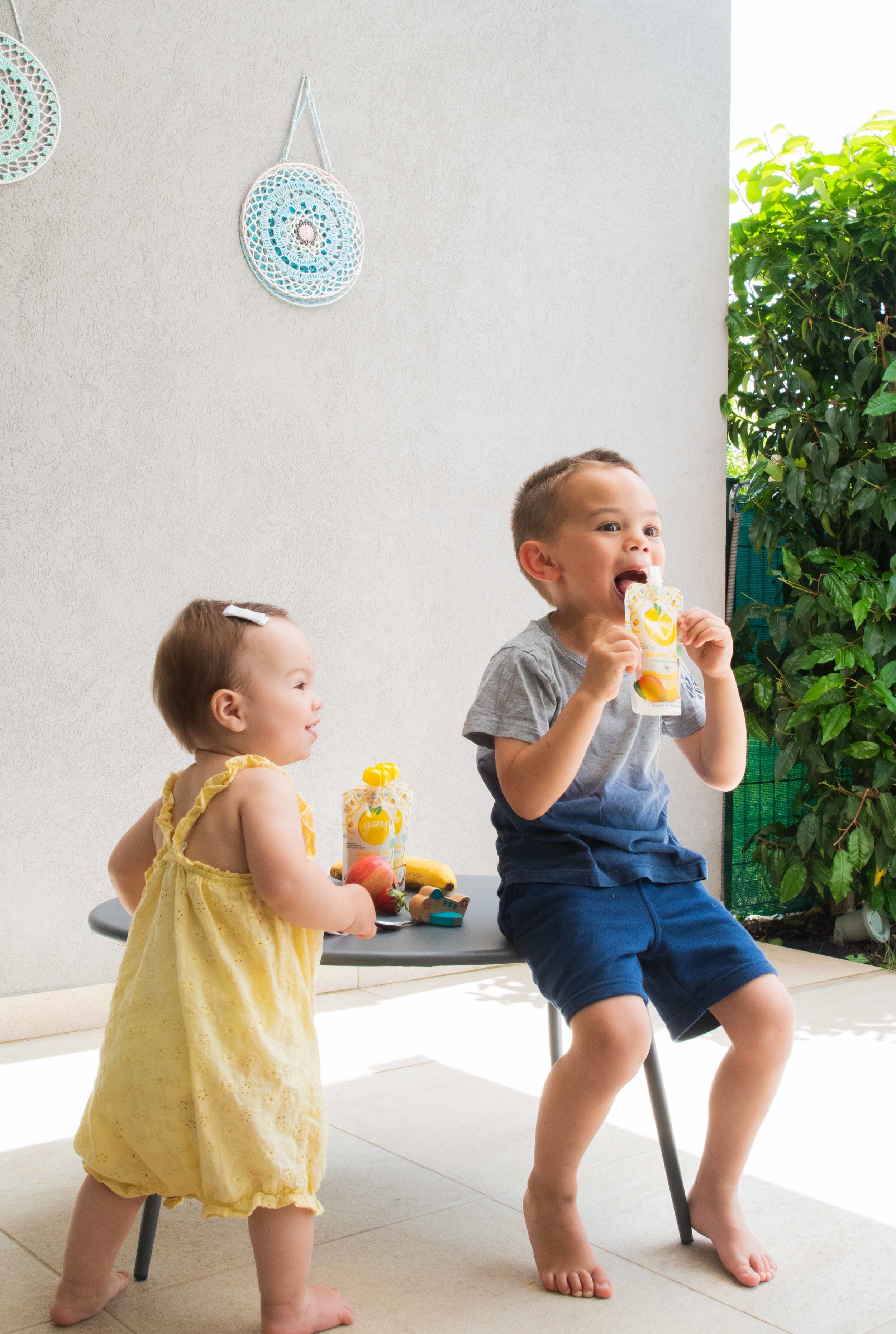 YAMO is a mix between “yam-yam”, the sound we make when something is really delicious, and “amo”, the Italian word for I love. Our hope is that one day babies will say YAMO instead of yam-yam when they really like something (laughs).